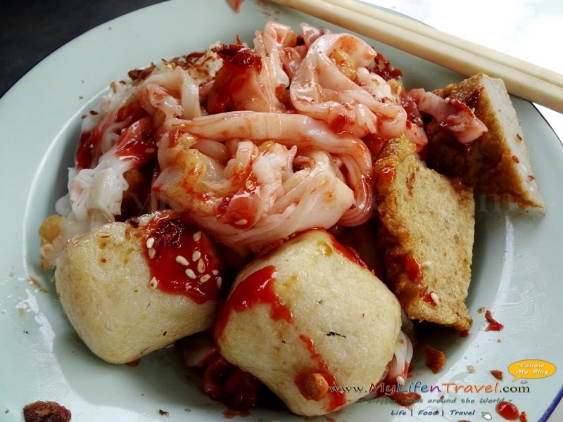 选好喜欢的炸料和酿料后,就可以交给老板结账,还可以另外叫咖喱面或亚叁叻沙,每一块炸料和酿料的价格加了GST后是RM0.85